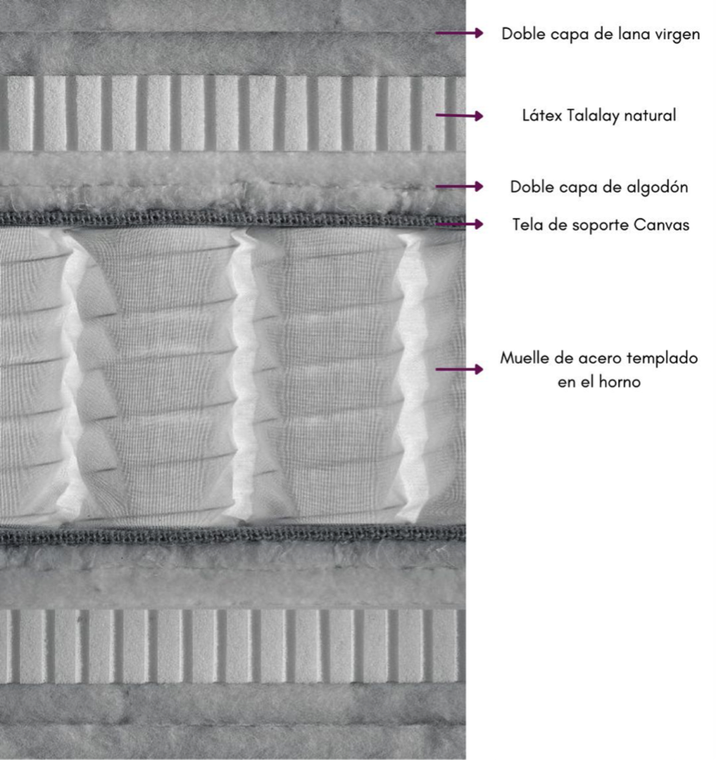 Natural latex in its purest and most quality form. Natural latex Upholstery of great elasticity with air chambers without upholstery support